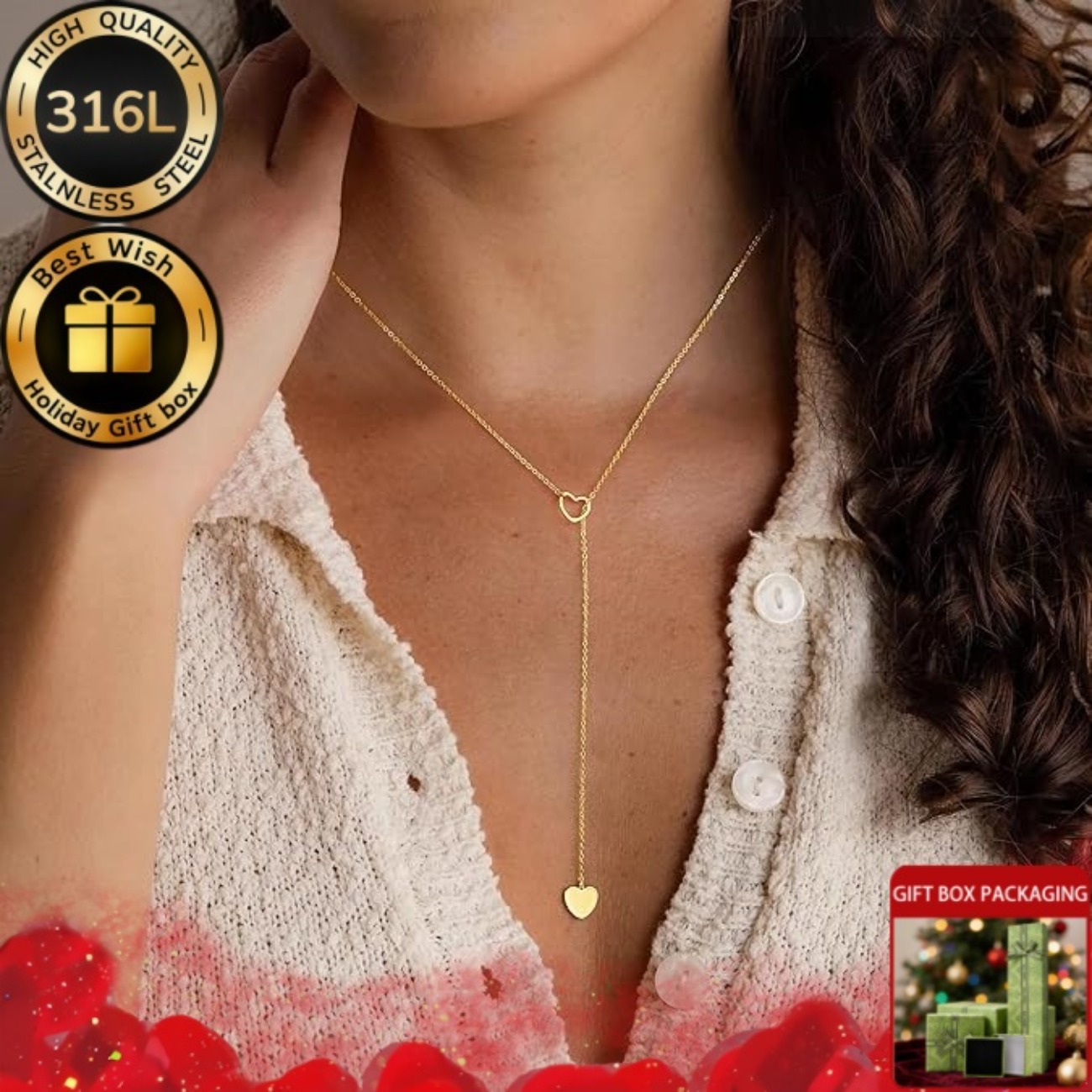 AMORÉE Gold Heart Necklace to połączenie ponadczasowej delikatności i kobiecego wdzięku. Złoty połysk i precyzyjnie wykonany motyw serca symbolizują miłość, elegancję i subtelne piękno. Smukła linia łańcuszka w formie litery „Y” delikatnie opada na dekolt, dodając szyku oraz zmysłowego uroku — idealna biżuteria na każdą okazję.