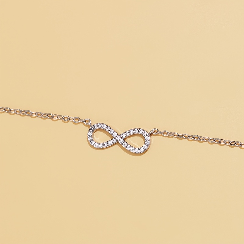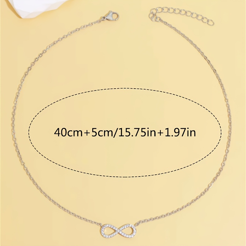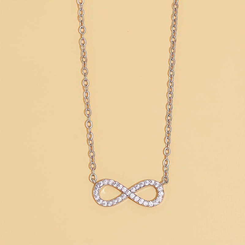 AMOUR Éternel Necklace to ponadczasowy symbol elegancji i harmonii zamknięty w subtelnej formie. Motyw nieskończoności, zdobiony drobnymi, błyszczącymi kryształkami, pięknie odbija światło, dodając szyi delikatnego blasku i wdzięku. To naszyjnik, który subtelnie podkreśla kobiecą pewność siebie, stanowiąc idealny akcent zarówno do klasycznych, jak i codziennych stylizacji.